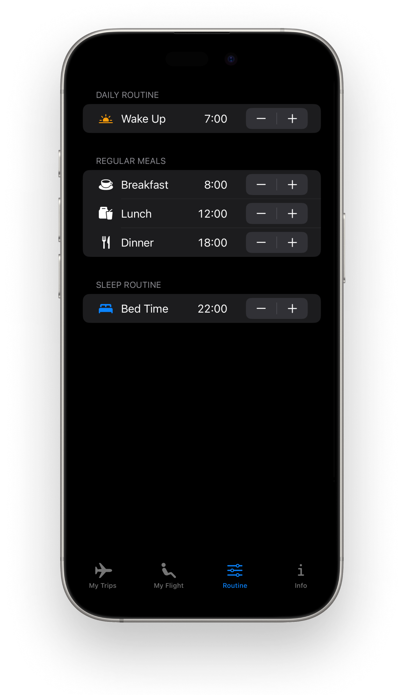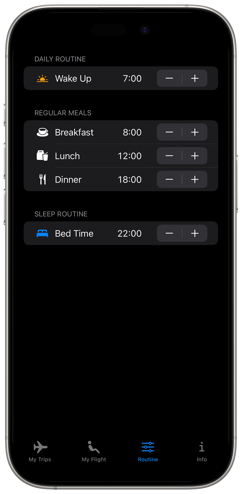 Personalize the app with your own routine.